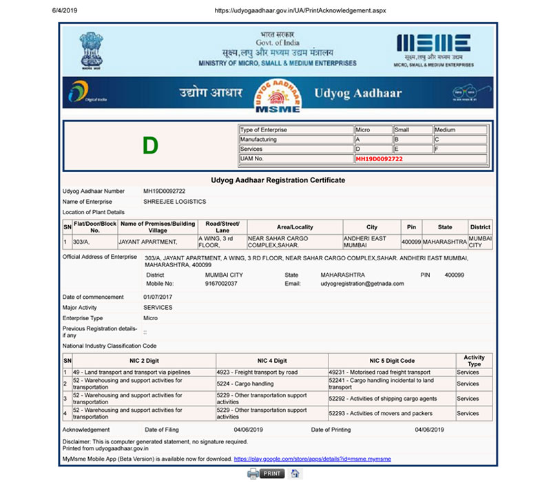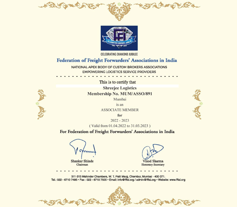 Shreejee Logistics 303/A, Jayant Apartment, A Wing, 3rd Floor, Near Sahar Air Cargo Complex, Sahar, Andheri (East), Mumbai - 400 099.